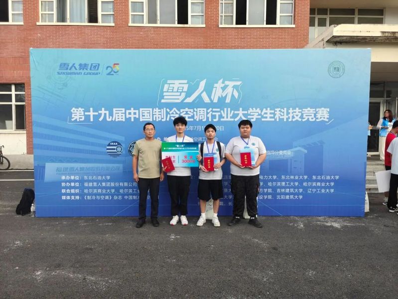 2025年7月19日至20日,“雪人杯”第十九届中国制冷空调行业大学生科技竞赛决赛(东北赛区)在东北石油大学落下帷幕。经过激烈角逐,土木水利学院建筑环境与能源应用工程专业2022级本科生施余、李信志、李童在郭胜杰、王亚轩老师的指导下,荣获本科生一等奖。作为本次竞赛的特别奖励,福建雪人股份有限公司现场向一等奖团队颁发工作录用offer。