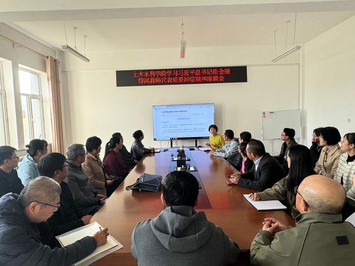 近日,土木水利学院召开座谈会,深入学习习近平总书记给全国特岗教师代表的重要回信精神,学院全体无教学任务教师参加了此次座谈会,党委书记崔冬梅主持会议并领学。