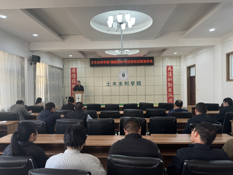 2025年10月16日,土木水利学院在310会议室举行“揭榜挂帅”科技项目政策宣讲会,学院全体无教学任务教师参加,会议由土木水利学院院长郑鑫主持。