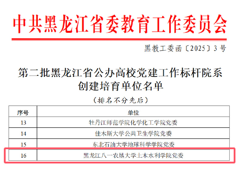 3月29日,学院党委获评第二批黑龙江省公办高校党建工作标杆院系创建培育单位。