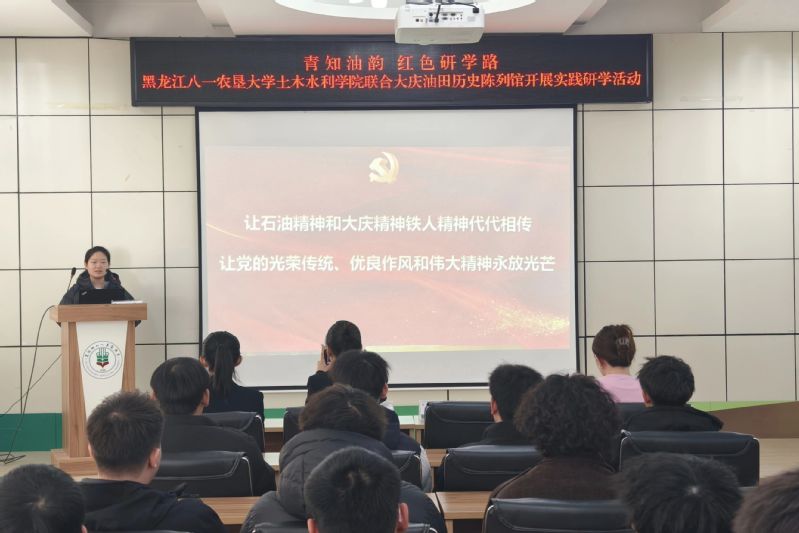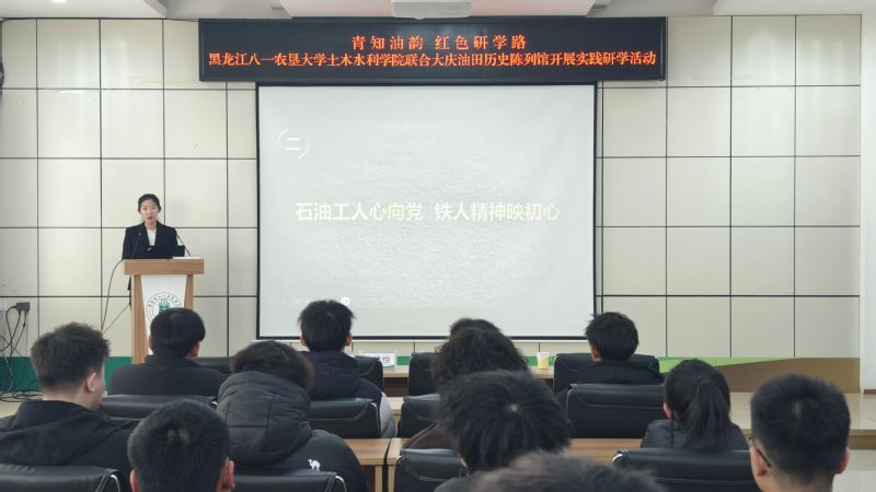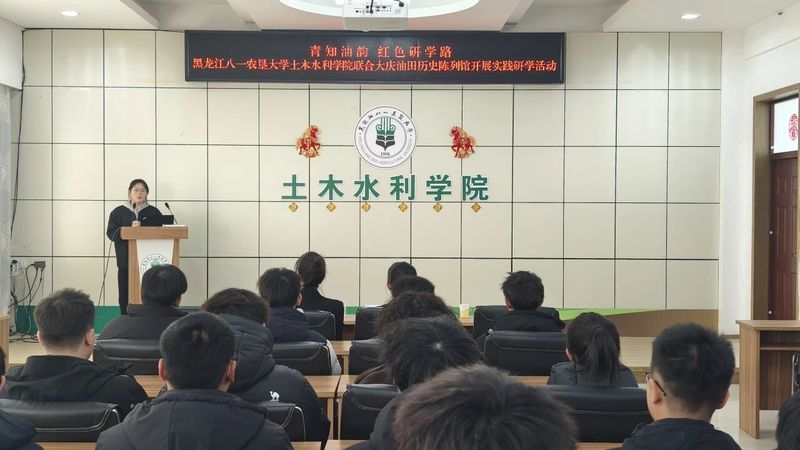 为将大庆精神(铁人精神)这一宝贵精神财富全面融入人才培养全过程,3月6日,土木水利学院联合大庆油田历史陈列馆开展“青知油韵 红色研学路”实践活动,引导青年学子传承红色基因、厚植家国情怀、践行使命担当。大庆油田历史陈列馆讲解员李欣怡、王逯,学院50余名学生代表参加活动,活动由辅导员高莹主持。