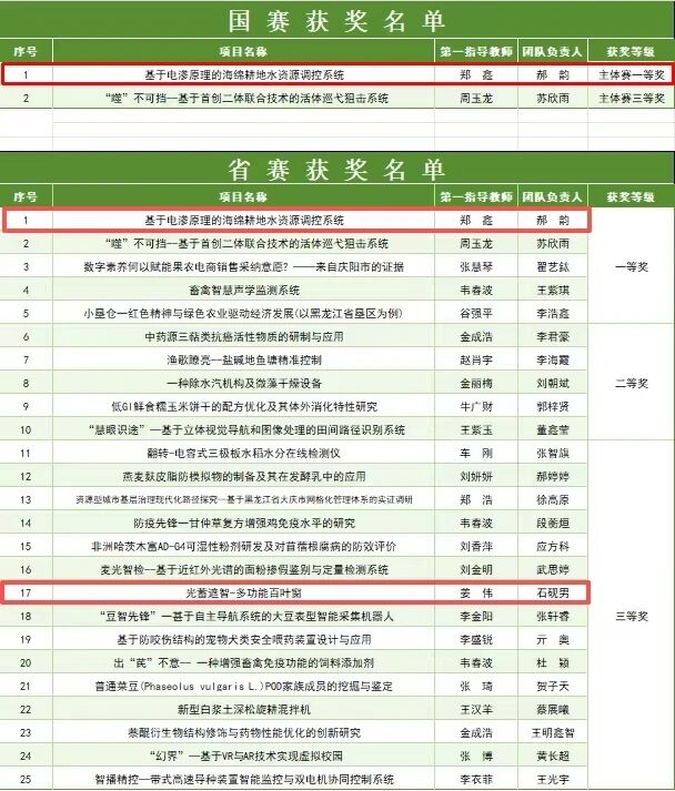 我院学生团队代表我校荣获国赛主体赛一等奖,省赛三等奖。其中参赛项目《基于电渗原理的海绵耕地水资源调控系统》从全国472所高校、1283件参赛作品中脱颖而出,凭借扎实的创新功底与突出的实践价值,一举斩获主体赛国家级一等奖!实现了我校“挑战杯”赛事历史上首次晋级全国总决赛、首次斩获全国一等奖的“双突破”,创学校历史最佳成绩,取得了里程碑式进展,书写了土木水利学院学科竞赛与实践育人的崭新篇章。