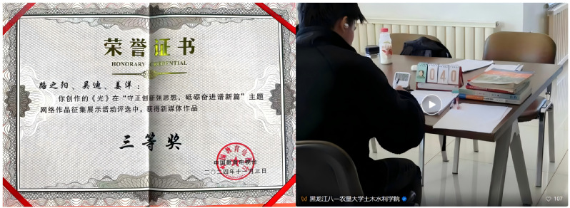 经过多年的探索与实践,土木水利学院“一心双环三驱动”网络思政教育体系成效显著。《黑龙江八一农垦大学土木水利学院实施“四个行动”创新传承北大荒精神》《黑龙江八一农垦大学土木水利学院积极构建“思政红+科创蓝”学生科技创新工作体系》被全国高校思想政治工作网报道,《黑龙江八一农垦大学王泰恩教授塑像揭幕》获央广网、东北网关注,优秀作品先后被中国大学生在线、CETV我是辅导员公众号、黑龙江共青团、掌尚大庆等官方平台转载,在黑龙江省大学生网络文化节、中国教育电视台网络作品、冰城高校微视频大赛评选中获佳绩。
